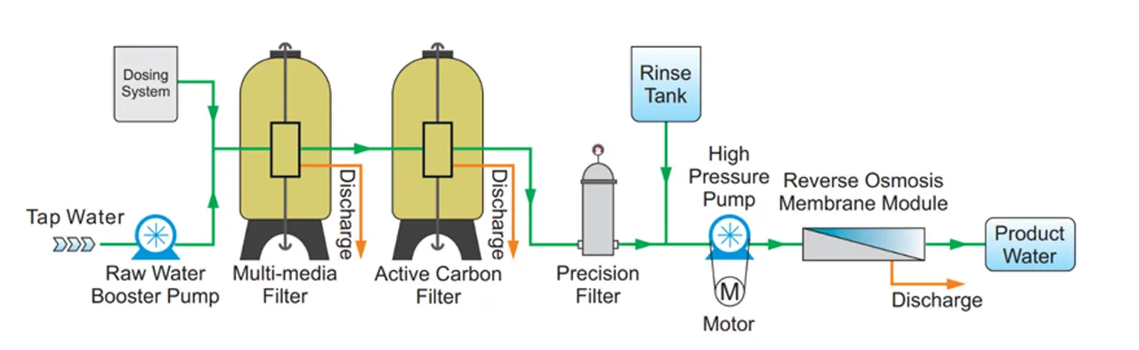 - أغشية عالية الرفض: تزيل ما يصل إلى 99.8% من الأملاح الذائبة والمعادن الثقيلة والملوثات.